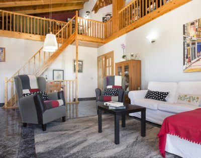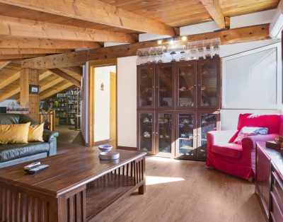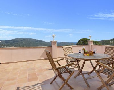Cuenta con una zona exterior con piscina privada (8,5 x 4,5m) y una gran terraza cubierta donde podrá disfrutar de agradables desayunos y comidas junto a la piscina con unas bonitas vistas a la montaña, barbacoa y plaza de parking para 2 coches. Supervisado por un guardia del anexo del apartamento.